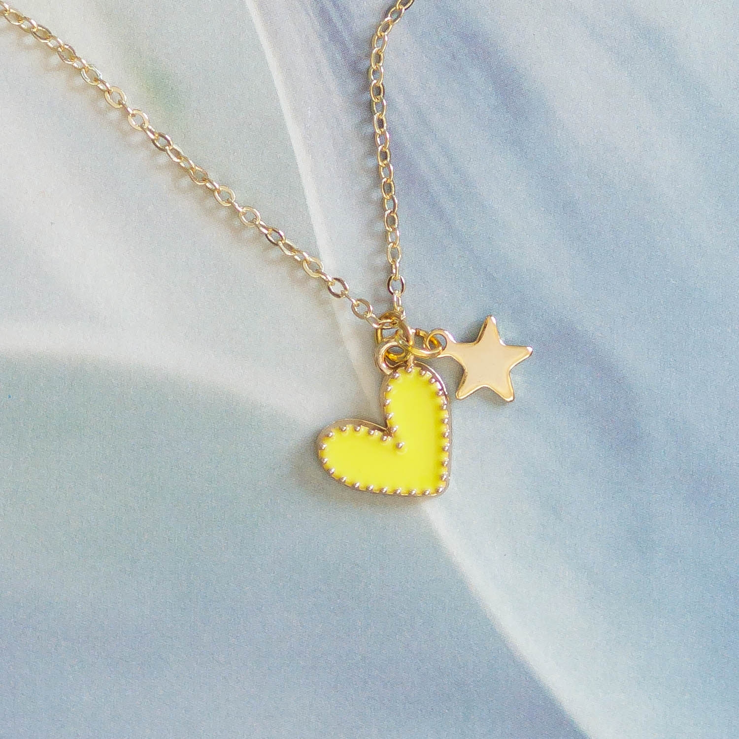 Laat je hart stralen met onze betoverende ketting met een geel hartje hanger! Dit schattige accessoire voegt een vleugje vrolijkheid toe aan elke outfit en is perfect voor het verspreiden van positieve vibes waar je ook gaat.
