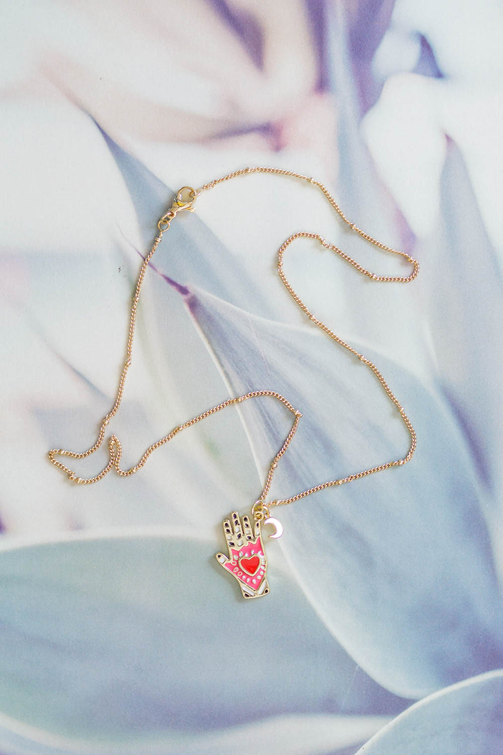 Grijp naar de liefde met onze charmante ketting met hand en hartjes hanger! Dit prachtige sieraad is een symbool van verbondenheid, liefde en zorg, en voegt een persoonlijk tintje toe aan elke outfit.