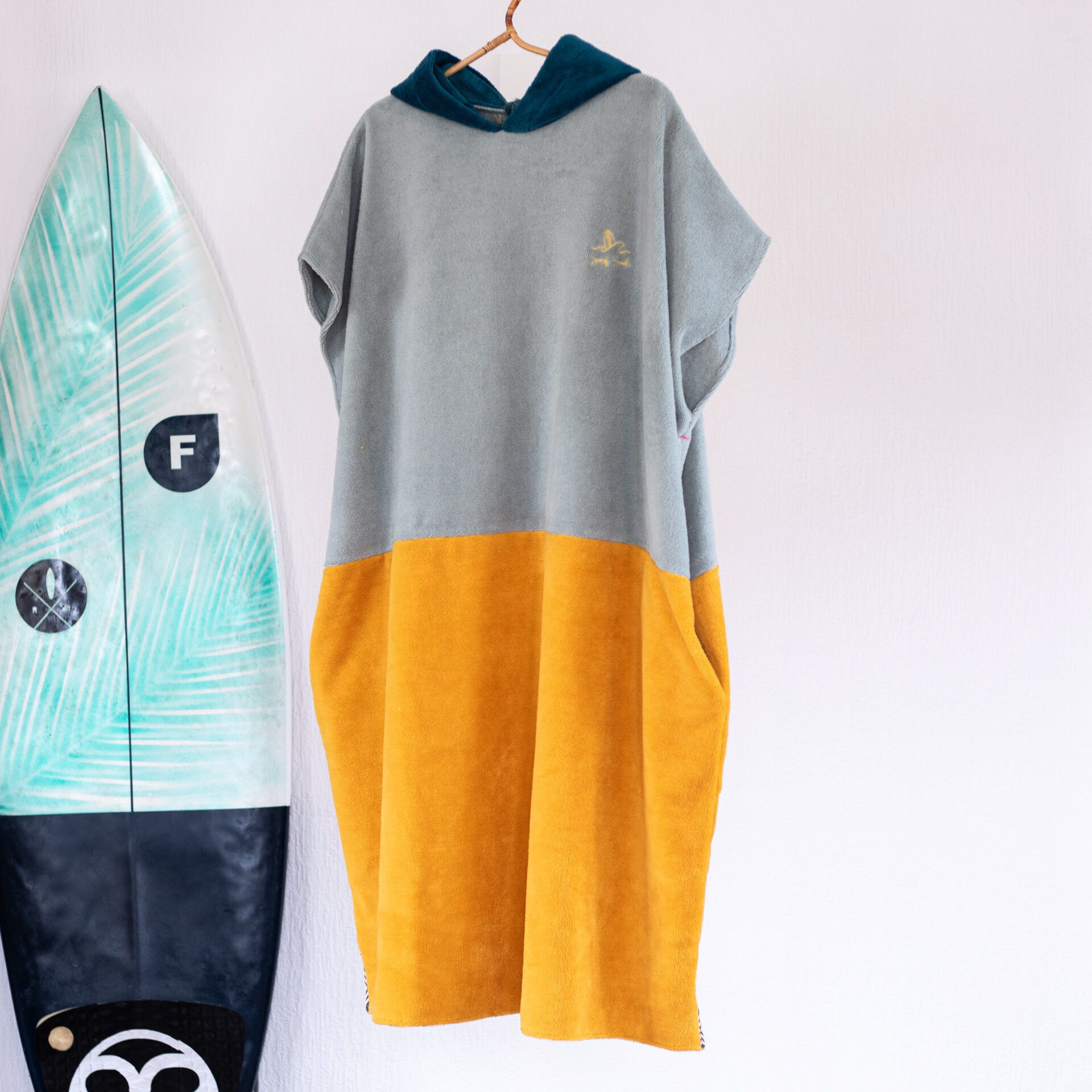Superzachte surfponcho, handgemaakt van bamboe-katoenen fleece. De buitenkant is van heerlijk zacht fleece, terwijl de binnenkant van katoen zorgt voor een snelle droging na een toffe surfsessie.