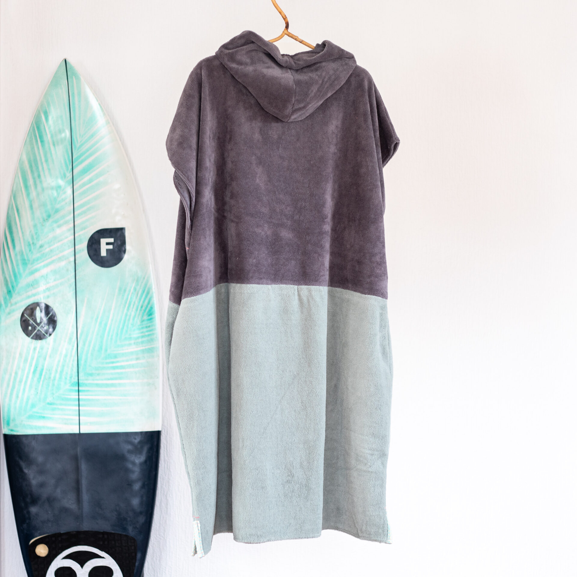 Superzachte surfponcho, handgemaakt van bamboe-katoenen fleece. De buitenkant is van heerlijk zacht fleece, terwijl de binnenkant van katoen zorgt voor een snelle droging na een toffe surfsessie.